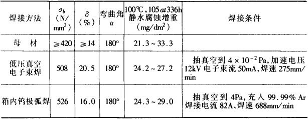 表10-98 Φ73×1mmZr-2合金管熔焊接头性能