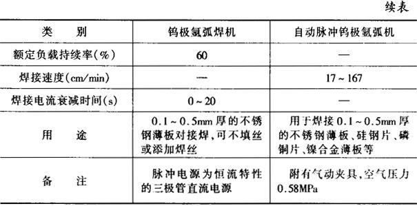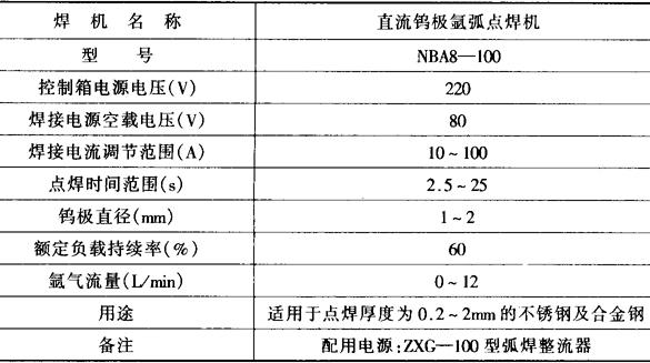 表5-23 钨极氩弧点焊机技术数据