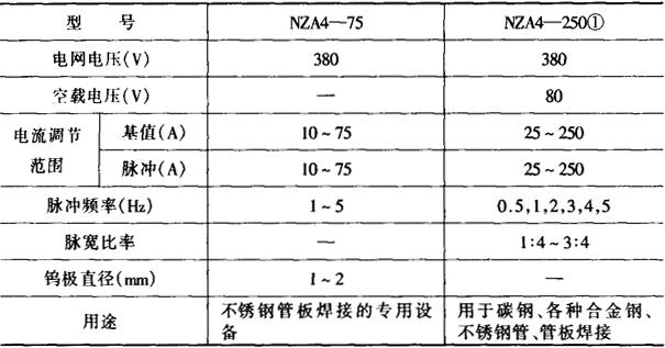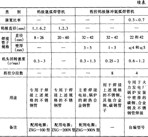 表5-25 管-管板专用脉冲氩弧焊机技术数据