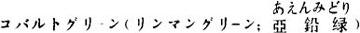 特性:亮绿色粉末。能溶于酸,不溶于水。是氧化钴和氧化锌的固熔体。大体结构为:CoZnO2,即锌酸钴。