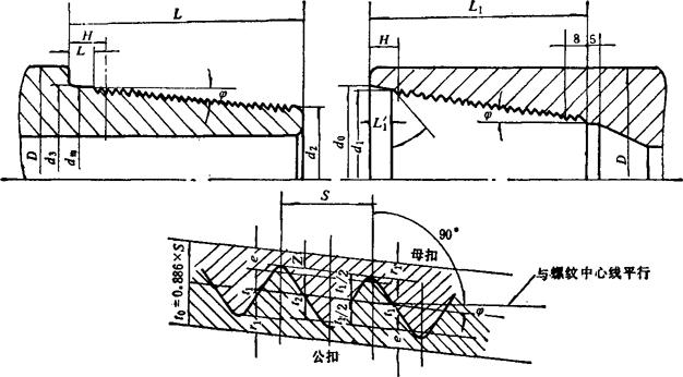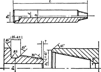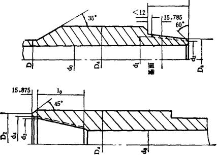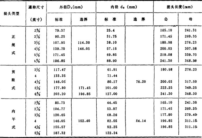 图3-2-28 对焊(配合)接头示意图 表3-2-61 国产钻杆接头规范(YB528-65)
