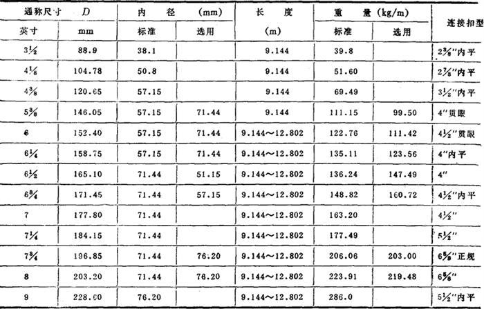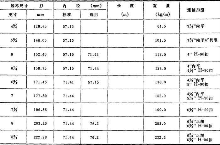 图3-2-27 钻铤 表3-2-48 国产钻铤规范(YB691-70)