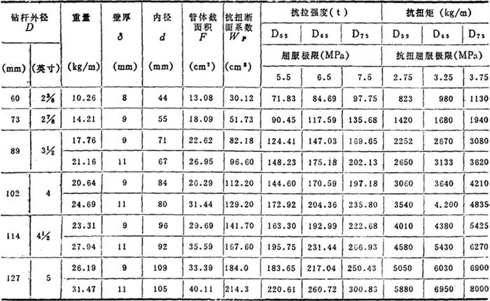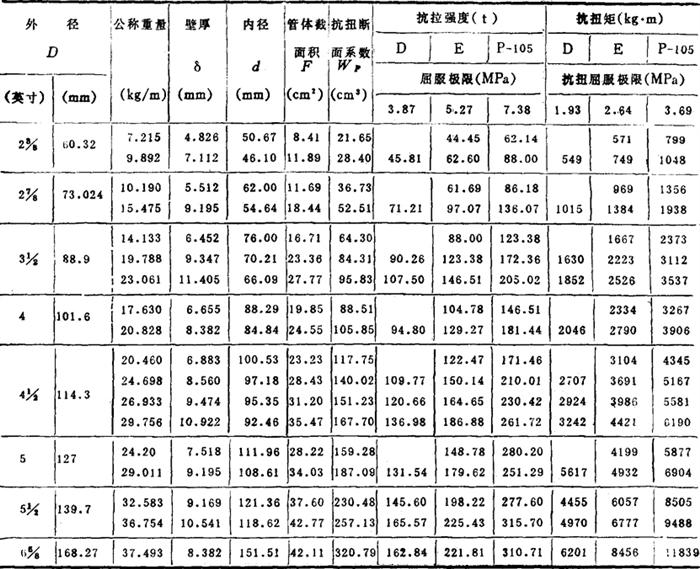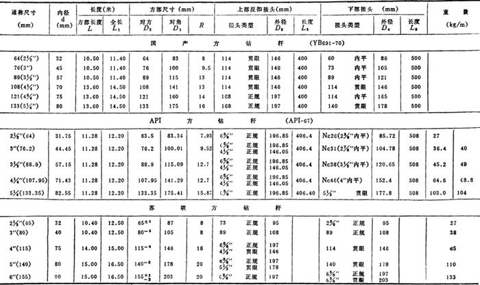 2.API钻杆与接头 见表3-2-62~表3-2-67和图3-2-29。 表3-2-62API钻杆规范和强度数据(API-67)