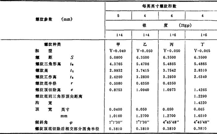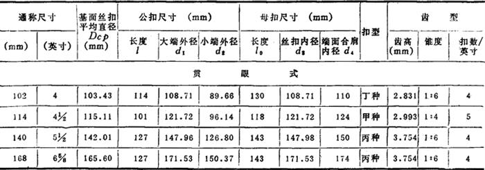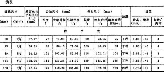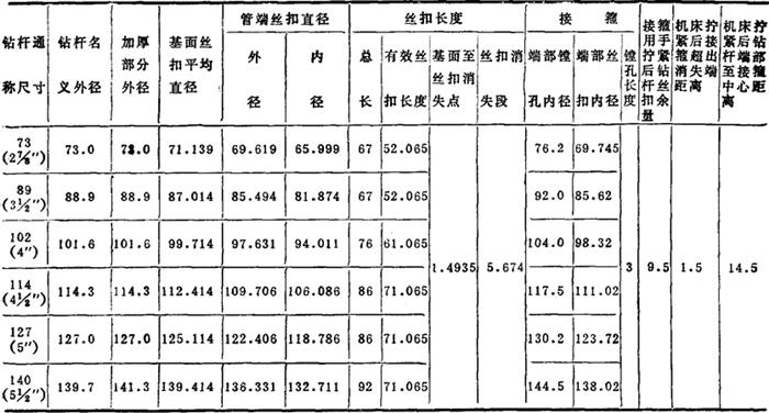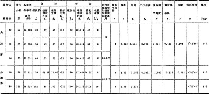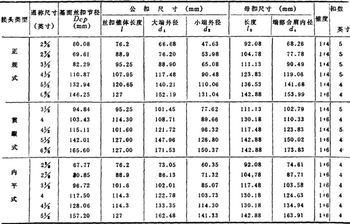 注:接头钢级比所连接的钻杆高-级. 表3-2-56 国产对焊钻杆接头、钻铤、方钻杆的丝扣规范(YB691-70)