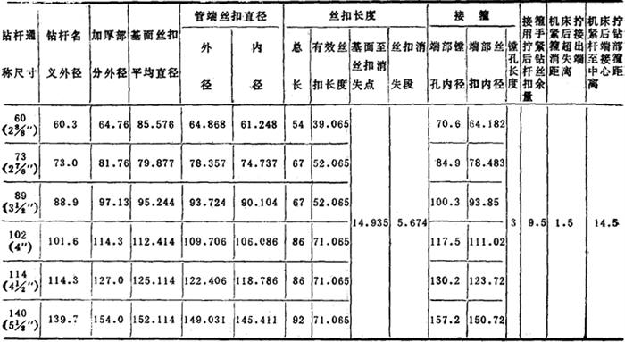 注:丝扣尖角均为804. 表3-2-57 国产细扣内加厚钻杆规范(YB528-65)