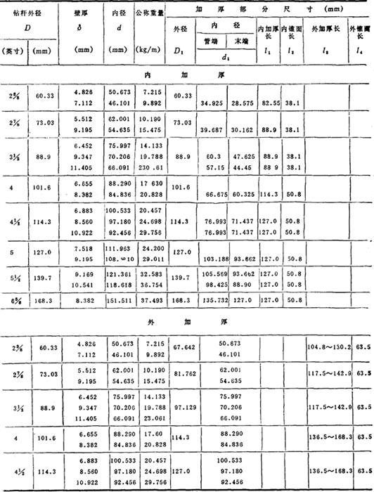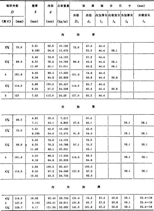 注:公称重量系包括接头、加厚部分的重量。 表3-2-63API细扣钻杆加厚部分尺寸(API-61)