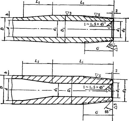图3-2-30 地质钻杆加厚型式 表3-22-68 地质钻杆及接箍规范