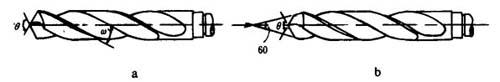 a-一般钻头 b-双割头钻头 θ-顶角 ε-螺旋角