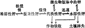 | 释义 | 钾素的功能与转化 钾素如何影响作物生长和产品品质,以及土壤中钾素的状况。这些既是合理施用钾肥的重要依据,也为合理施肥提供途径。 1.钾素的生理功能 作物体内全钾含量与氮相近,有的甚至超过。钾在幼叶、幼芽和根尖中含量较高,而种子中较低。迄今尚未发现有机体化合物的组分中含有钾,但钾以60多种酶的活化剂形式广泛影响作物的生长和代谢。 (1)促进淀粉和糖分的合成 钾充足时有利作物光合作用,增加对氮的吸收,促使单糖向蔗糖、淀粉的方向合成。如薯类、纤维类、糖料等作物,淀粉和糖分含量的提高。 (2)增加油脂和蛋白质的含量 钾能加速氮素、碳水化合物的代谢和转化,提高花生、油菜、大豆等油料作物的油脂,以及其他作物的蛋白质含量。 (3)增强作物抗逆性 钾能使作物体内可溶性氨基酸和单糖减少,纤维素增多而细胞壁加厚。作物抗病、抗旱、抗冻、抗倒伏的能力增强。有的试验表明:钾能减轻水稻受过量的Fe2+、Mn2+和硫化氢等还原物质的危害。 可见,钾肥不仅在产量方面,而且在改善产品品质方面具有独特作用。 2.钾素缺乏症状 缺钾症状多在作物生长中期或后期出现。主要症状表现在叶部,从老叶向上扩展,如果新叶也表现缺钾症状,表明缺钾的程度已相当严重。几种作物的缺钾症状如下: (1)水稻 易发生褐斑病或赤枯病,多在水稻分蘖中期到抽穗阶段。症状是新叶难抽出,抽穗不齐;老叶尖端和边缘由黄变褐,发生不规则的褐色枯斑。 (2)小麦 初期时全部叶片呈绿色或蓝绿色,叶质柔弱,叶尖向下卷曲。以后老叶尖端及边缘变黄,逐渐成棕色而枯萎,象烧焦的样子。 (3)油菜 早期叶片变黄、卷曲,出现褐色斑块或灼烧状的斑块。蕾薹期以后,叶片皱缩增厚,叶缘焦枯;角果小,阴果多。 (4)棉花 易发生红叶茎枯病或凋枯病。在苗期和营养期时,叶黄、花斑、茎枯,又称花斑黄色茎枯病。花铃期时主茎中上部叶片呈黄色花斑,继而红色,叶脉仍为绿色。 (5)烟草 喜钾作物之一。缺钾是老叶先出现不规则的黄斑,零星分布于中部、叶缘和叶尖。继而黄斑不断扩大成片,叶缘枯死,有时产生缺刻。有的老叶边缘失水收缩,下卷曲如“覆盘”状。 3.钾素在土壤中形态与转化 我国土壤全钾(P2O5)含量1—2.5%,大体上北高南低,主要受成土母质和气候条件的影响。 (1)钾素在土壤中的形态 钾素以无机盐形式存在,按溶解度大小分三种形态。 ①难溶性钾:又称矿物态钾,如黑云母、白云石等。它占土壤全钾的95%左右,只溶于强酸,作物不能直接吸收。 ②缓效性钾:又称非交换性钾,多在粘粒矿物层状结构中,以及易风化矿物中的钾。它占土壤全钾量的1—3%,高的达5%,比难溶性钾易风化,是土壤有效钾的直接来源。所以,在用土壤有效钾含量指导施钾中,有时也要考虑土壤缓效钾状况。 ③有效性钾:又称速效性钾,包括交换态钾和水溶态钾两部分,约占土壤全钾含量的1%左右。交换态钾是土壤胶体吸附的钾离子;水溶态钾存在于土壤溶液中。土壤有效钾可供当季吸收,可作为合理施用钾肥的主要依据。 (2)钾素在土壤中的转化 土壤中不同形态的钾是互相转化的。土壤中被释放的钾,有效性提高;被固定的钾,有效性下降。土壤难溶性钾或缓效性钾的释放是在物理、化学和微生物等因素的作用下,缓慢地被风化、分解。 土壤有效性钾被固定,主要二种方式:①“晶格固定”,主要是一些2∶1型粘粒矿物的土壤,在频繁的干湿交替中,易使钾固定在晶格内部的空间,不易释放;②“生物固定”,是指微生物对钾的暂时吸收,当微生物死亡后,经分解释放,钾仍可以被作物吸收。土壤中钾的转化可用如下图4表示。