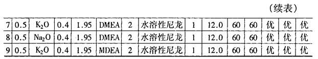 注:DMEA=N,N-二甲基乙醇胺;MDEA=N-甲基二乙醇胺;APES=N-(β-胺乙基)-γ-氨基丙基三乙氧基硅烷。)