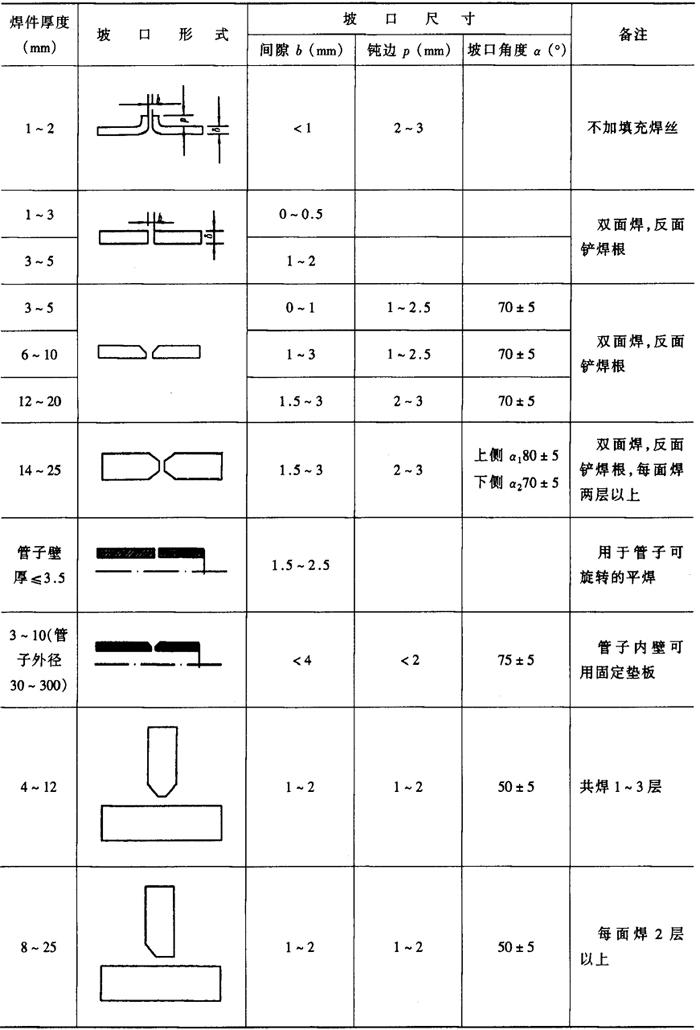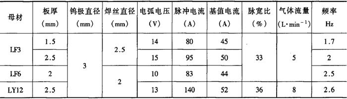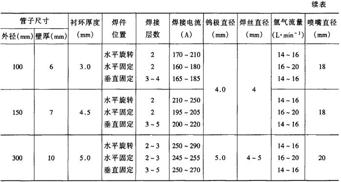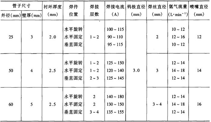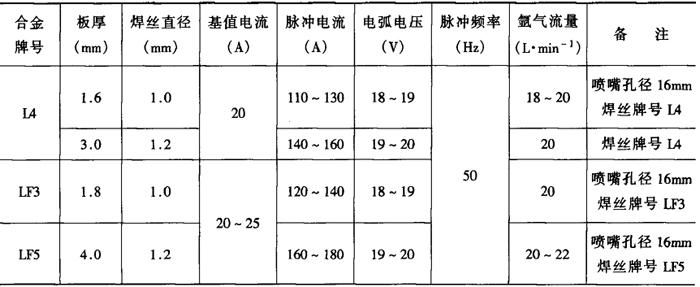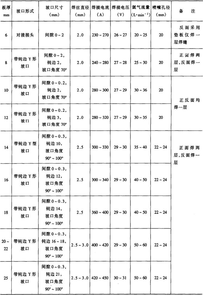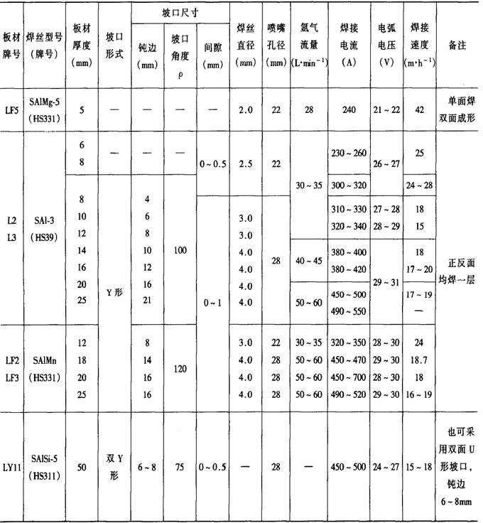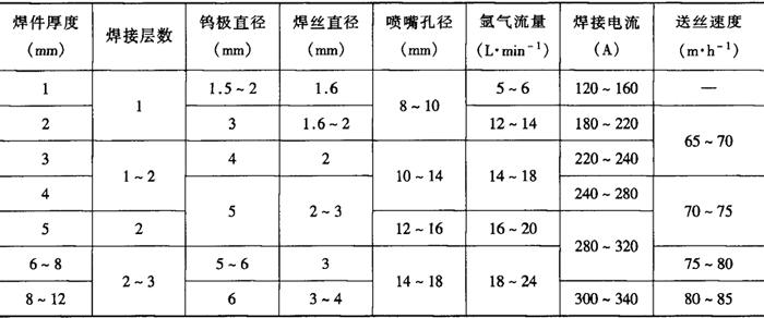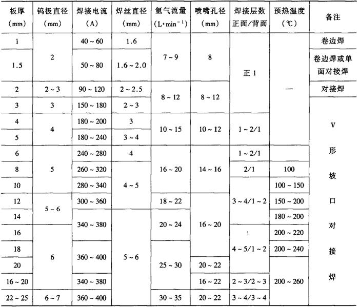 注:采用交流电 表2-7-16 自动钨极氩弧焊焊接工艺参数[1]