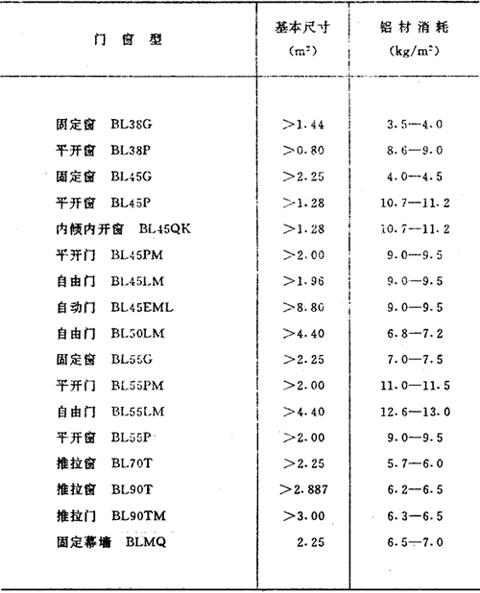 铝合金门窗备料指标