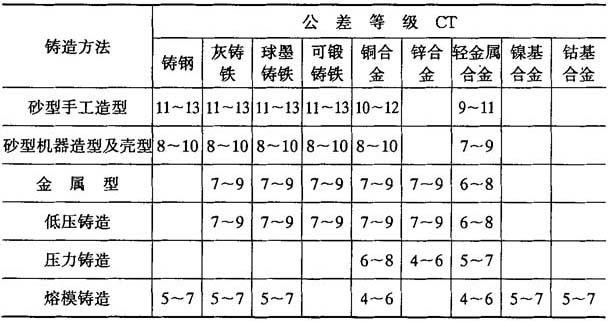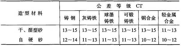 表2-20 小批和单件生产铸件的尺寸公差等级