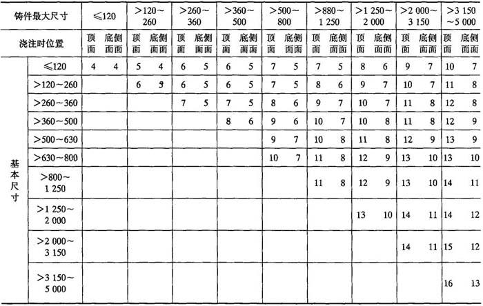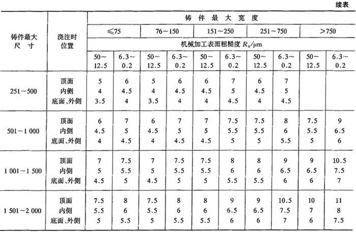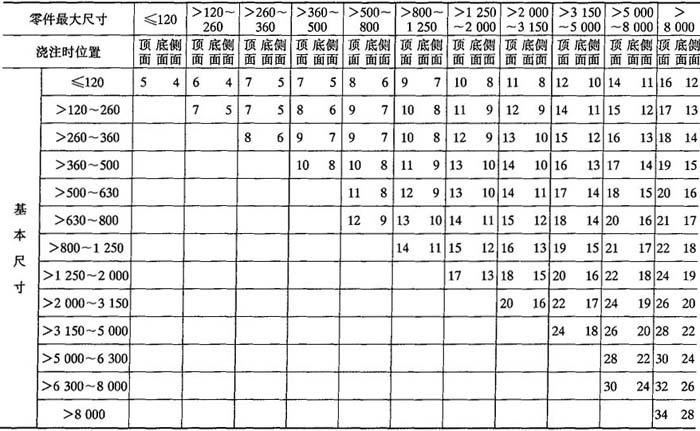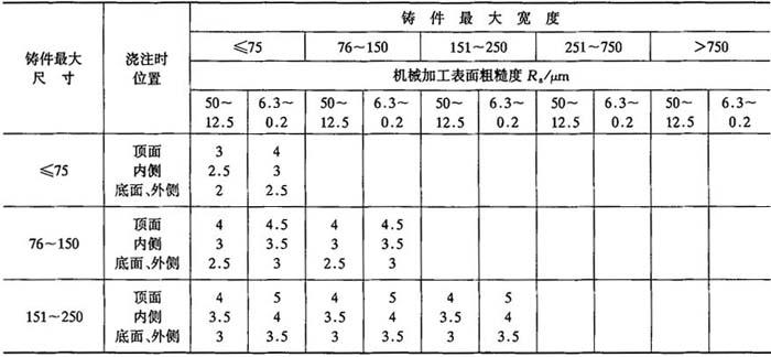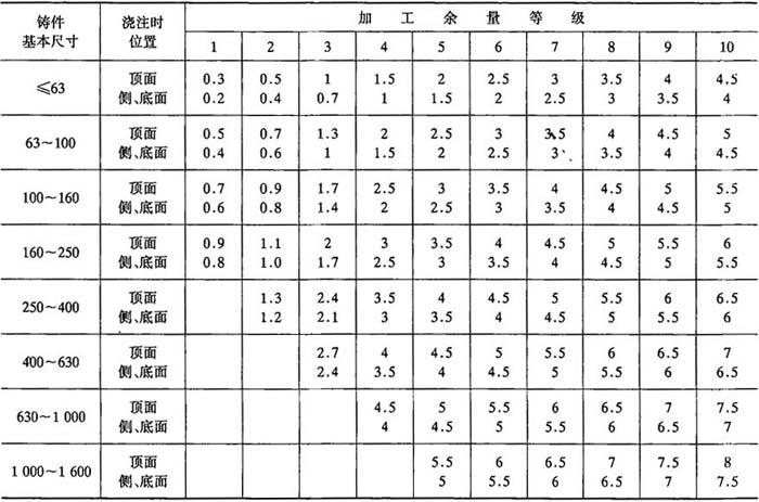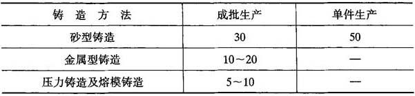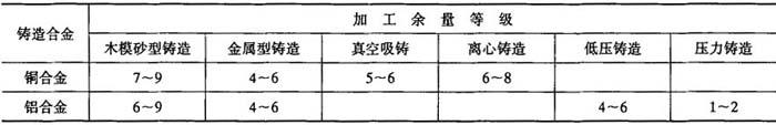 注:特大型铸件的个别部位加工余量允许适当增大. 表2-27 铜、铝有色金属铸件机械加工余量等级选择