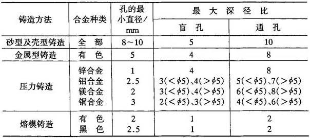 表2-31 铸件铸出孔的最小尺寸