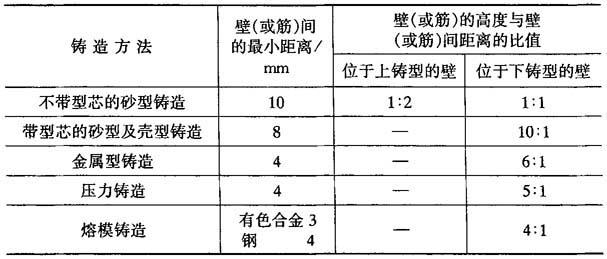 表2-33 铸件壁(或筋)间的最小距离及高度