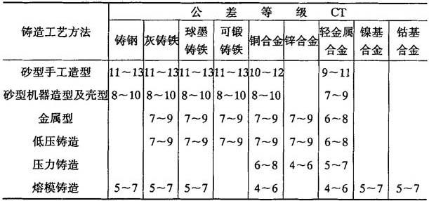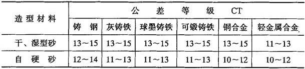 表5-120 小批和单件生产铸件的尺寸公差等级(GB6414—86)