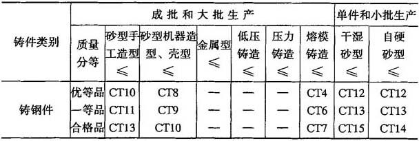 注:同—铸件用机器造型和手工造型生产时,其尺寸公差等级在铸件质量分等标准中可另行规定. |