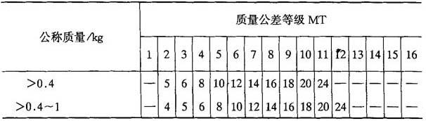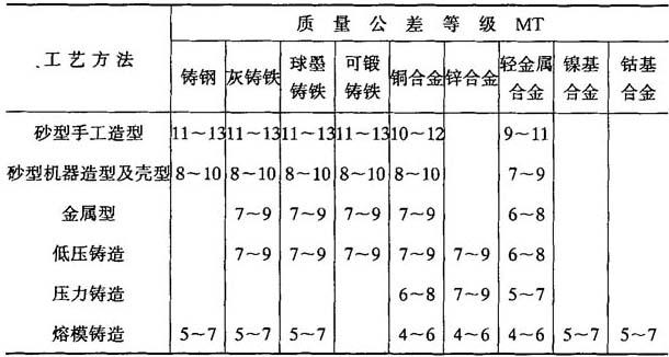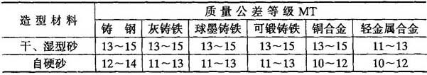 铸件质量公差的代号用字母MT(Mass Tolerance)表示,共分16级,即MT1~MT16.质量公差数值见表5-122.