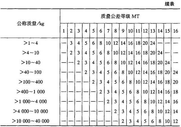 注:表中质量公差数值为上、下偏差之和,即一半为上偏差,一半为下偏差.