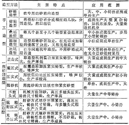 | 释义 | 铸造方法分类 铸造方法一般分为砂型铸造和特种铸造两大类。 1.砂型铸造(表14-61) 表14-61 砂型铸造方法的类别、特点和应用范围