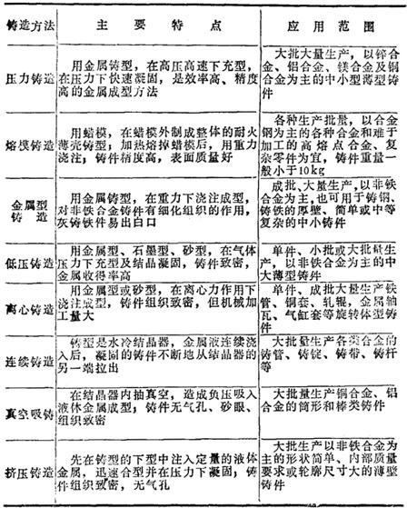 2.特种铸造(表14-62) 表14-62 特种铸造方法的类别、特点和应用范围