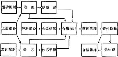 图14-5 砂型铸造生产的工艺流程 |