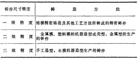 表14-64 铸件尺寸精度与铸造方法