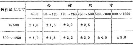 表14-65 三级精度铸件尺寸偏差(mm)