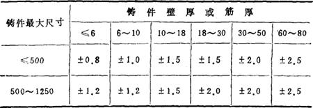 表14-66 三级精度铸件的非加工壁厚和筋厚偏差(mm)