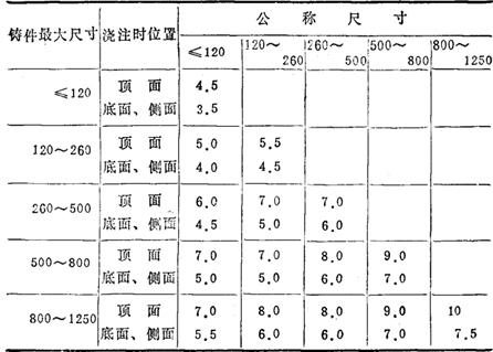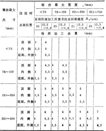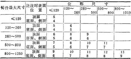 表14-70 青铜铸件机械加工余量