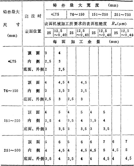 表14-69 铝合金铸件机械加工余量