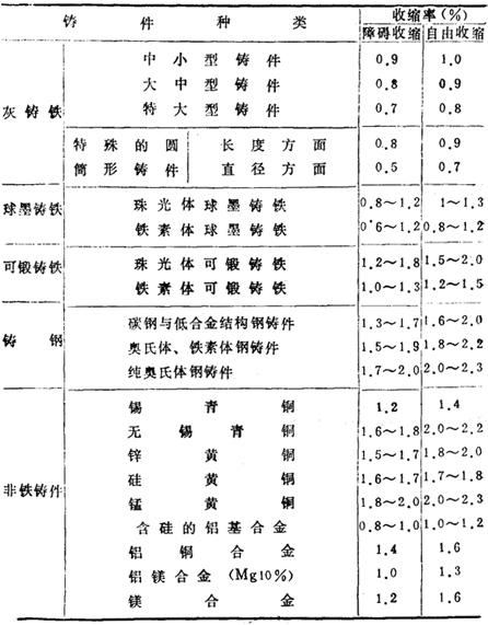 表14-71 铸造合金线收缩率
