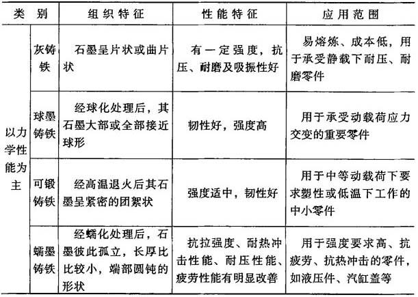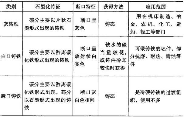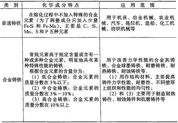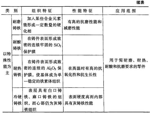 由铁、碳和硅组成的合金总称铸铁.工业用铸铁碳的质量分数在2.5%~4.0%.铸铁中,除铁、碳和硅三种基本组元外,还含有锰、硫和磷.铸铁中碳是影响组织和性能的重要元素,硅和锰是调节铸铁组织和性能的元素,在一般情况下磷和硫是有害杂质,应尽量减少.铸铁的分类方法很多,常按表4-1、表4-2和表4-3所列三种方法分类.