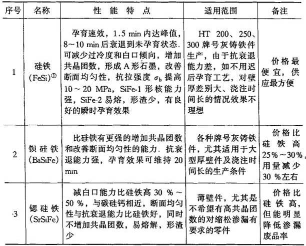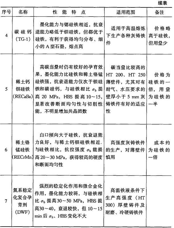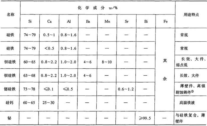 ①例如ω(N1)=14%、ω(Cu)=6%、ω(Cr)=2%、ω(Si)=15%的耐蚀球墨铸法. 表4-31 各种球化工艺的特点及适用范围