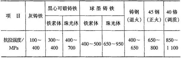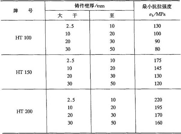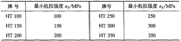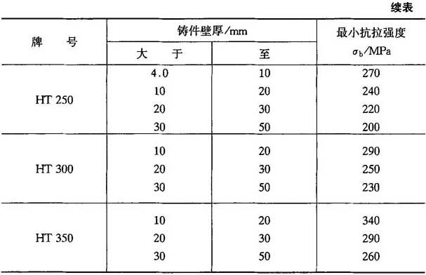 注:验收时,n牌号的灰铸铁,其抗拉强度应在n~n+100MPa的范围内 表4-16 预计的铸件力学性能
