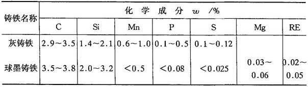 4.3.1.5 球墨铸铁 1.球墨铸铁的化学成分 铁水经过球化处理,使石墨大部分或全部呈球状,有时少量为团絮状的铸铁,称为球墨铸铁.为了保证更好地球化,对原铁水尽量采用“高碳、硅,低磷、硫”的原则.磷使球铁的塑性、韧性和强度急剧降低,且易冷裂,因此,磷的质量分数应小于0.1%.硫易与球化剂化合成硫化物,使球化剂损耗增大,故硫的质量分数应限制在0.03%以下.球墨铸铁与灰铸铁的化学成分对比如表4-24所示.由于化学成分和冷却速度的不同,将获得不同的石墨基体组织球墨铸铁按基体组织特点分为铁素体球墨铸铁和珠光体球墨铸铁. 表4-24 球墨铸铁与灰铸铁化学成分对比表