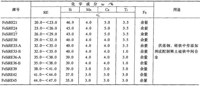 表4-28 稀土硅铁合金(GB4137—84)
