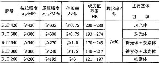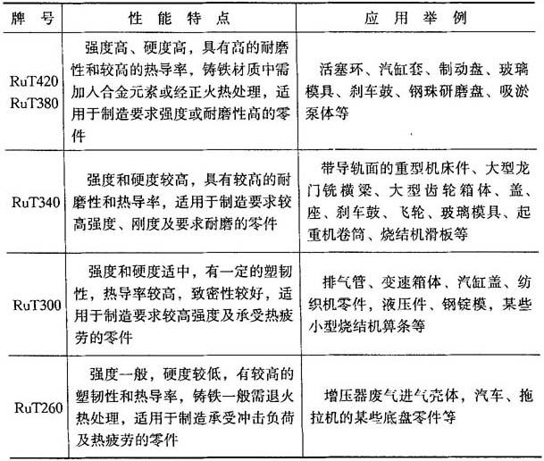 表4-40 各种牌号蠕墨铸铁的性能特点与应用举例