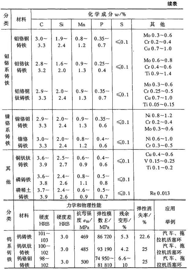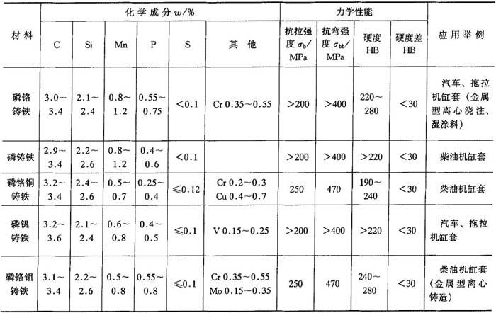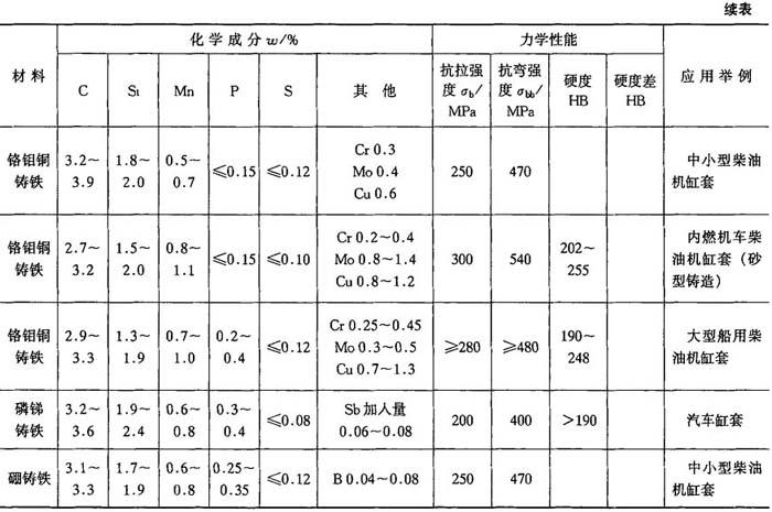 表4-43 气缸套用耐磨铸铁