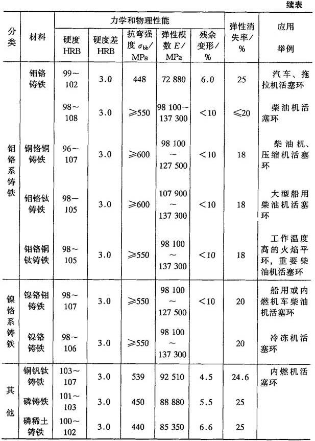 表4-42 活塞环用耐磨铸铁
