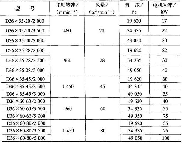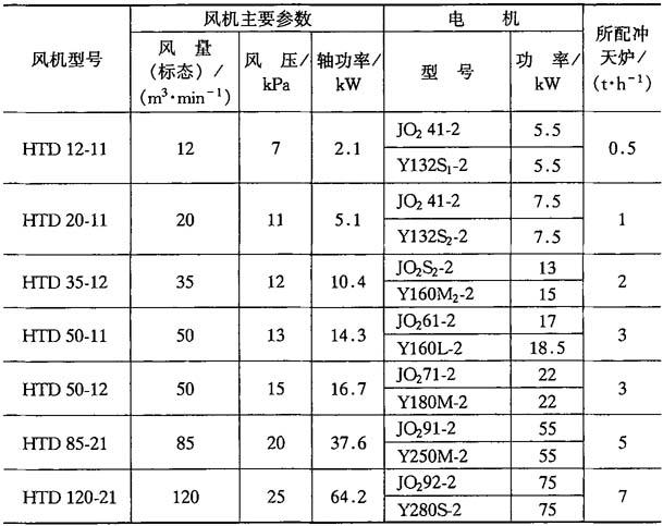 表4-88 冲天炉专用HTD系列高压离心鼓风机