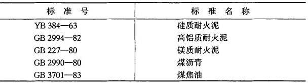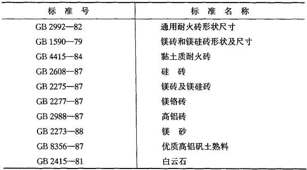 注:按干基计算. 表4-99 常用耐火材料标准目录