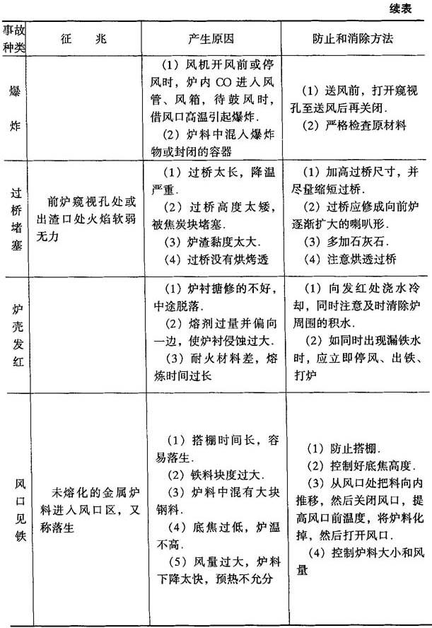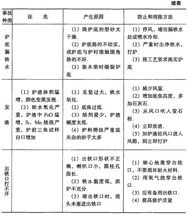 表4-103 冲天炉熔炼操作常见故障及排除方法