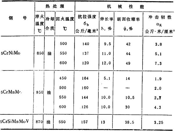 表126 5Cr2MnMo与5CrNiMo钢的性能比较(硬度HRC42)