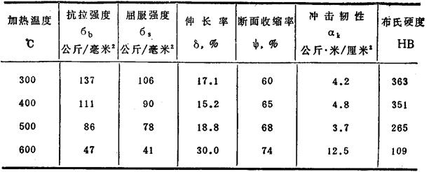 表124 在较高温度下5CrNiMo钢的机械性能 (预先经过820℃油淬,500℃回火)