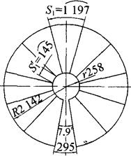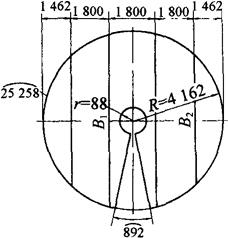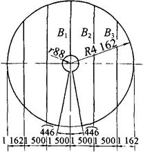 图3-153 甲醛贮罐顶盖 (1)跨心式排版料计算(见图3-154)