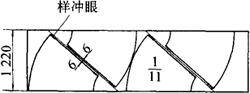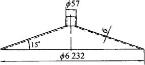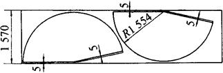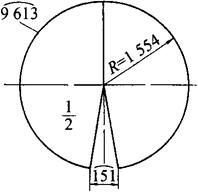 ③总弧长S=π×3060=9613(mm) ④缺口大端弧长S1=2π×1554-π×3060=151(mm) 本例使用-8×1570×6000(mm)Q235-A板,排成两个半圆正合适,排版图见3-157。