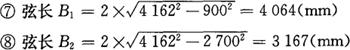 图3-155 排版图(对称式) 这种排版方法也不合理,但可分两瓣卷制,此法适于弹性较差的厚板。上面跨心式已将大部分数据计算,下面仅计算本方式所用的数据。 ①中半弦长B1=4162-88=4074(mm)