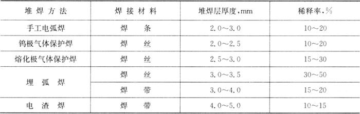 注:①指堆焊表面层熔敷金属的种类代号,具体焊剂牌号可向有关焊剂厂咨询。 ②堆焊层数根据需要而定。 |